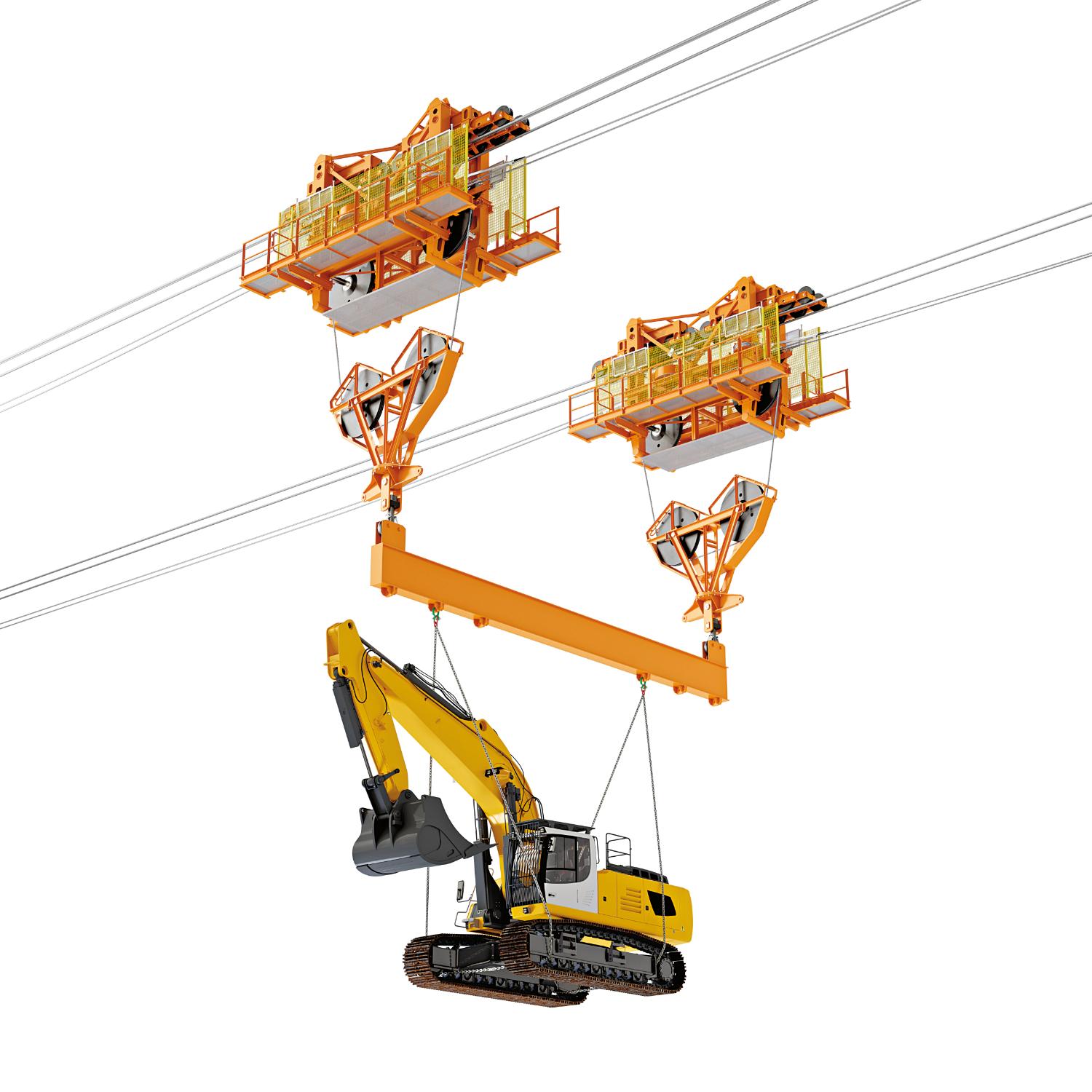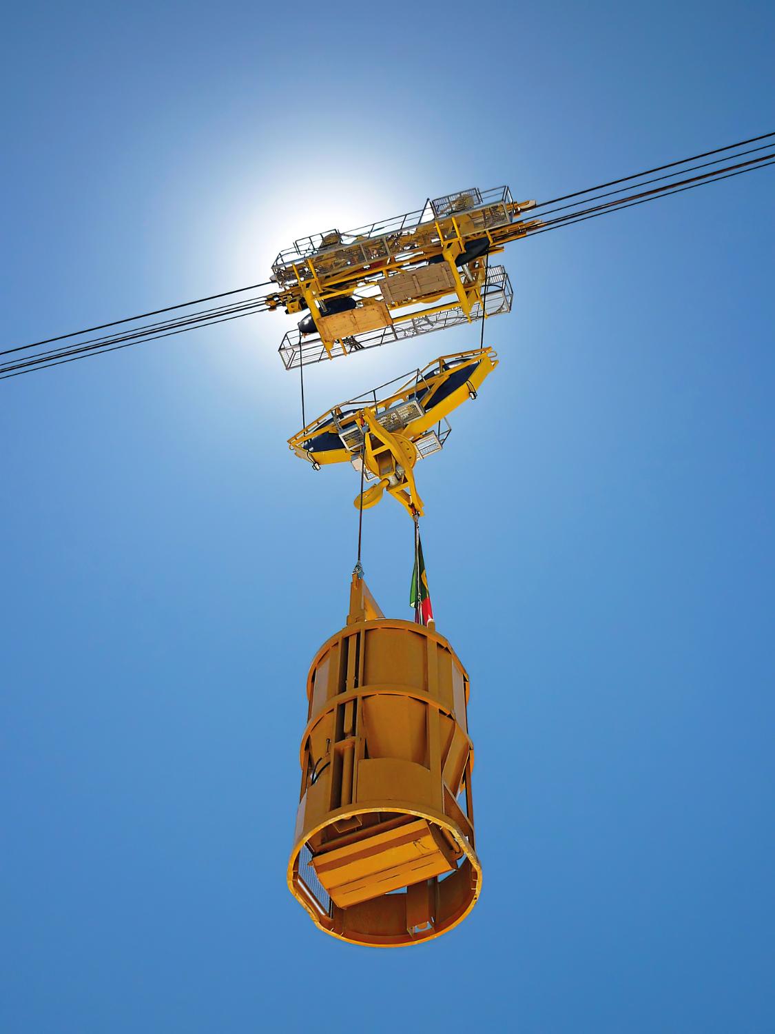 I Blondin Agudio possono lavorare in coppia per raggiungere una portata al gancio di 70 tonnellate. Un sistema di controllo appositamente sviluppato garantisce il funzionamento automatico delle macchine in tandem, evitando errori e riducendo i tempi di trasporto.