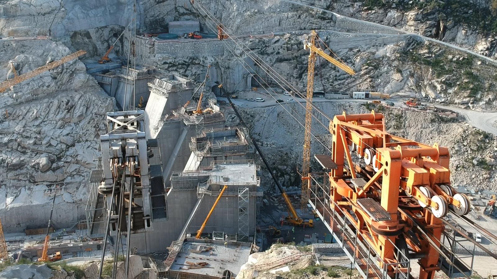 Revisione completa, installazione e collaudo di due blondin radiali utilizzati per la costruzione della diga di Daivoes, alta 77 metri e lunga 264 metri, una delle quattro dighe previste nell’ambito del progetto idroeletrico del Tamega, nel nord del Portogallo.
