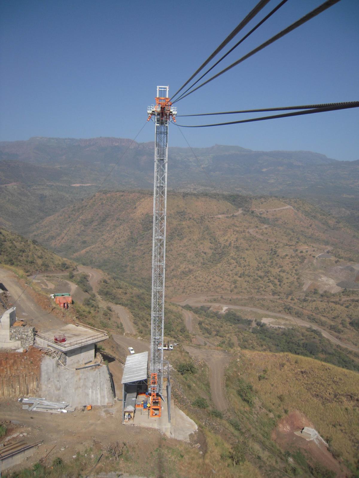 Blondin radiale da 28 ton utilizzato per la costruzione di una diga in RCC, il blondin è stato identificato come l’apparecchiatura migliore per posizionare i nastri trasportatori utilizzati per il trasporto del RCC, ottenendo una notevole riduzione dei tempi e dei costi di realizzazione dell'opera. Una delle caratteristiche principali di questo blondin è la torre fissa da 70m, una sfida sia in termini di progettazione, sia in termini di costruzione.