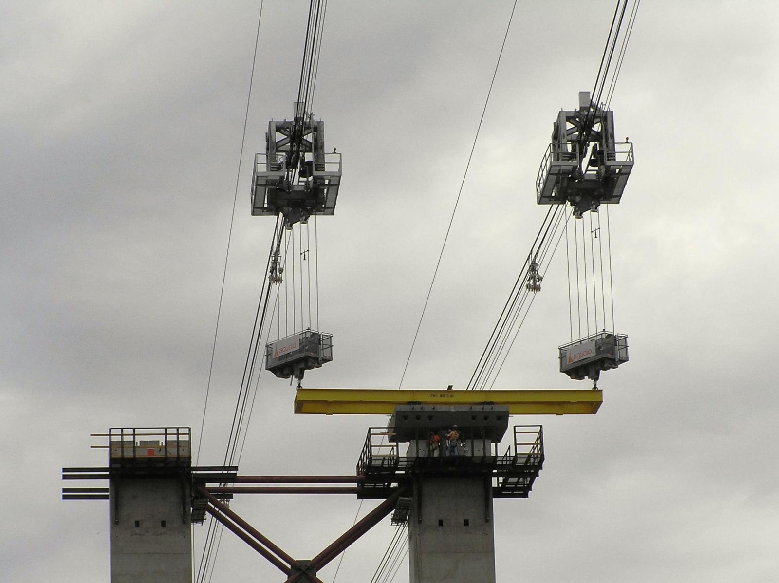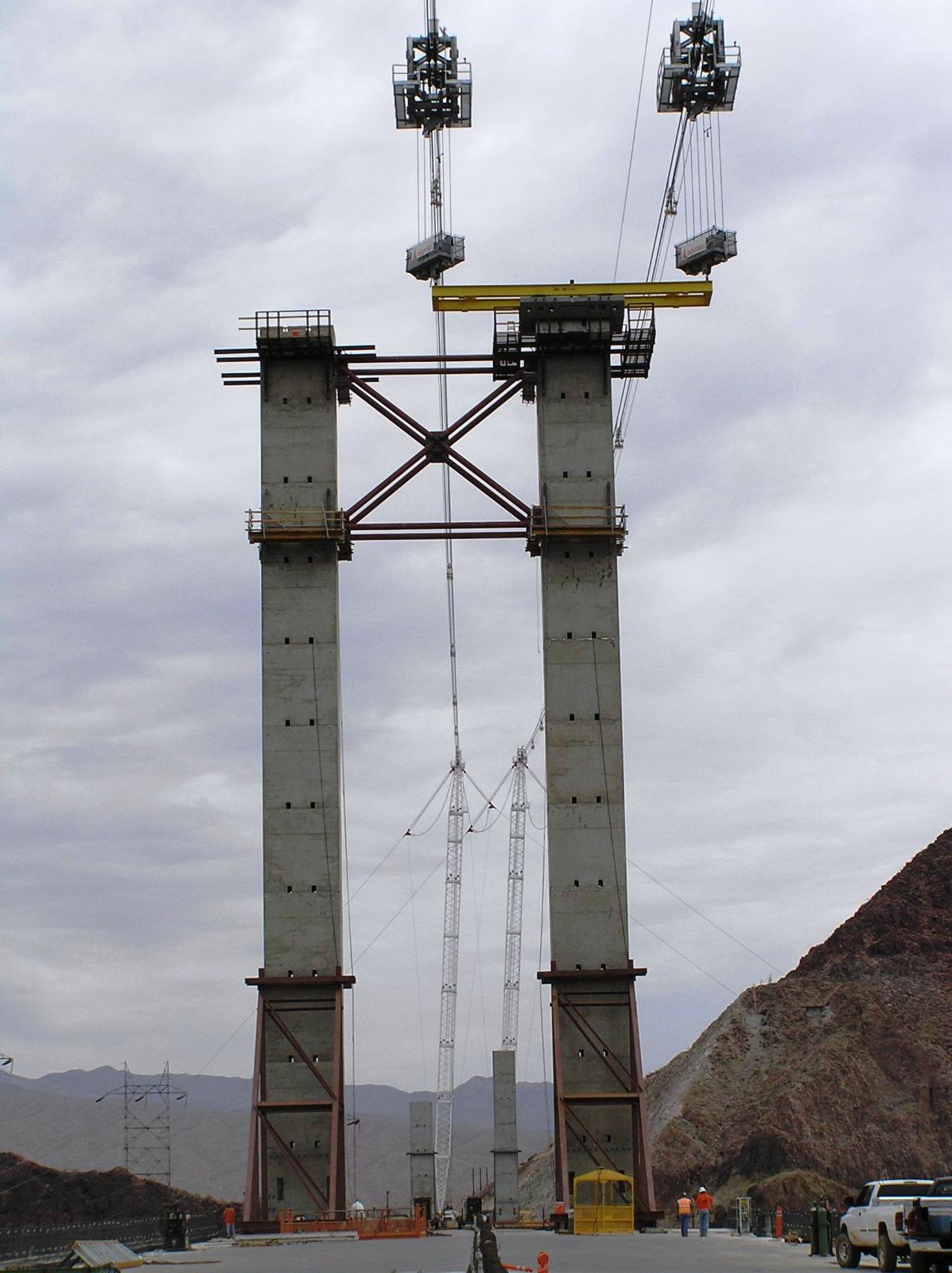Progettazione e costruzione dei carrelli e dei cavallotti per i due blondin brandeggianti utilizzati per la costruzione del viadotto di by-pass della diga di Hoover al confine tra Nevada e Arizona. I blondin sono stati utilizzati per movimentare le apparecchiature di cantiere e le sezioni prefabbricate del viadotto.