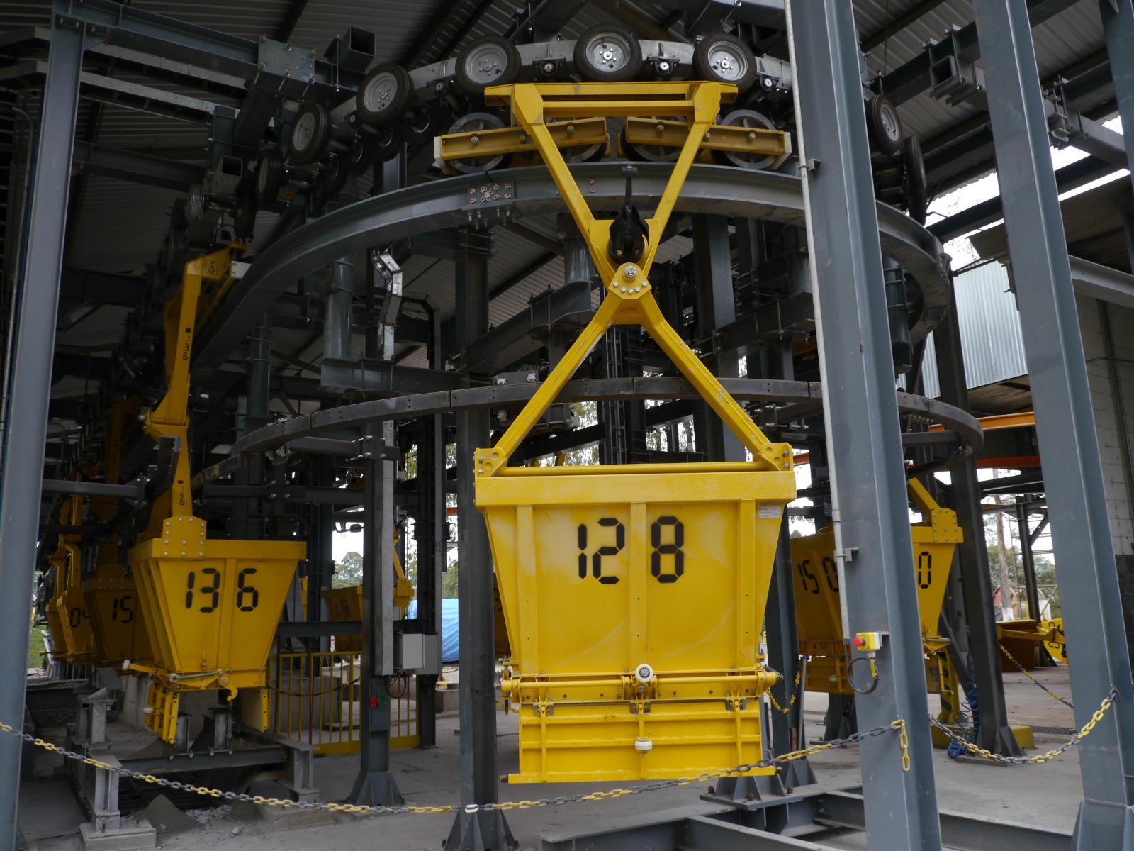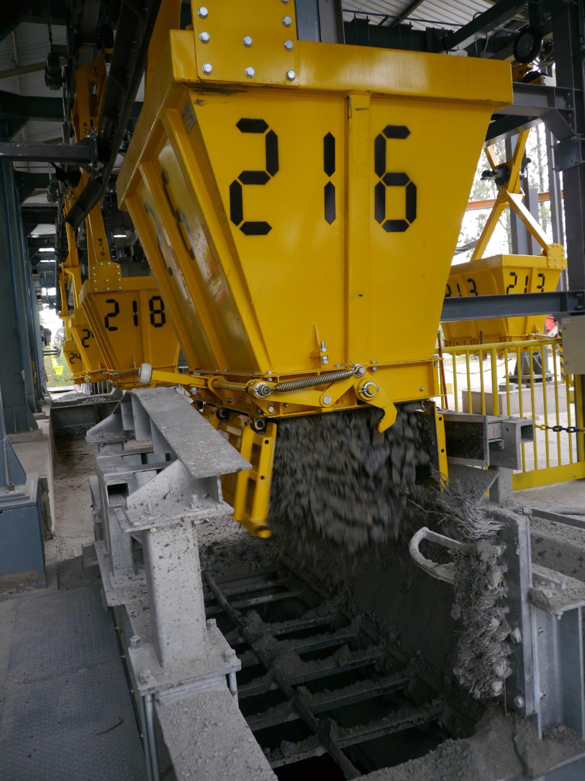 Revisione e potenziamento della teleferica che collega la cava con l’impianto di produzione al fine di incrementarne la capacità da 325 a 450 ton/h. I principali interventi sono stati: la sostituzione delle benne, l'ancoraggio della funi portanti e l'installazione di un nuovo sistema di controllo per la sincronizzazione del movimento delle benne nelle tre stazioni.
